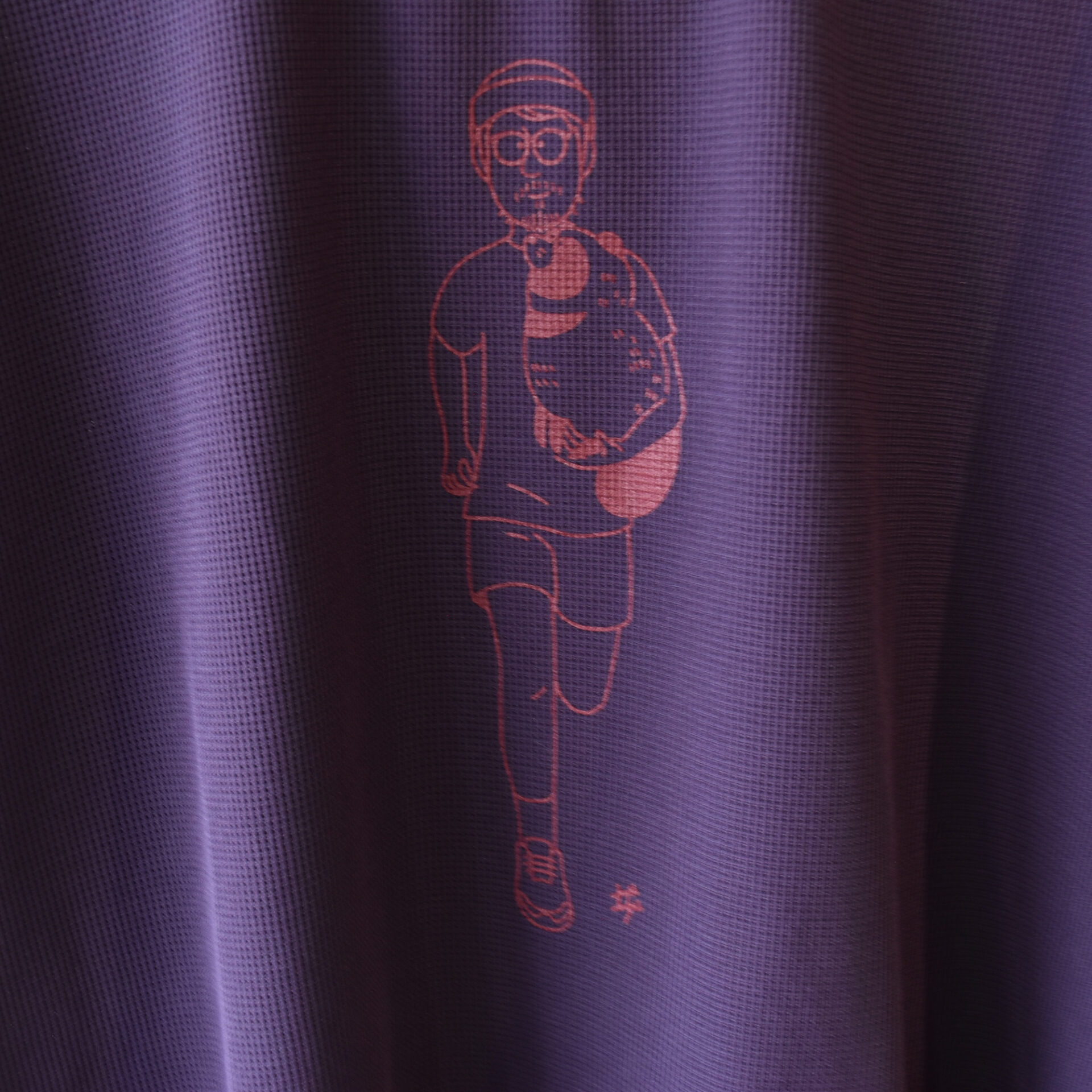 Mahinaさんはとても素敵なイラストを描きます。シンプルな点と線で人の顔を表現し、そのシンプルさに共通項を持たせながらしっかりと違いを出していきます。動物を描くのもとても上手で、今回のタヌキの丸々しさなんかもなかなか出せる丸々しさではないのではと思っています。前面に大きながグラフィックが入るデザインにはなっていますが、そのイラストのシックさと落ち着いたカラーリングによって、過度に派手にならず普段着としても着用できる製品に仕上がったと思っています。