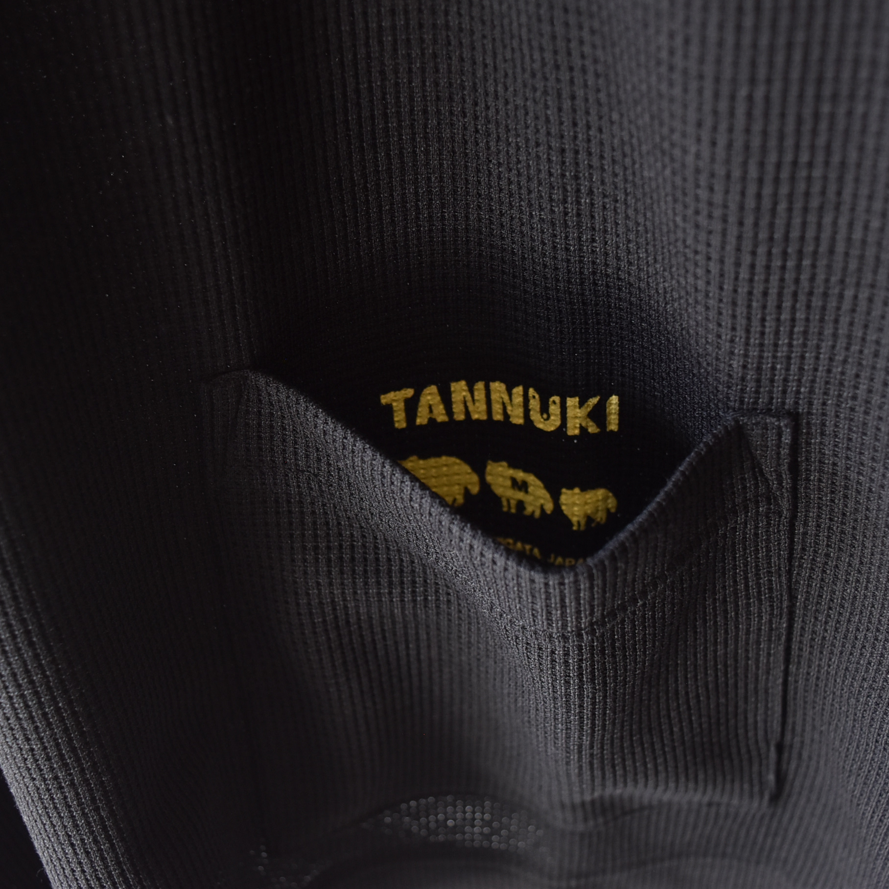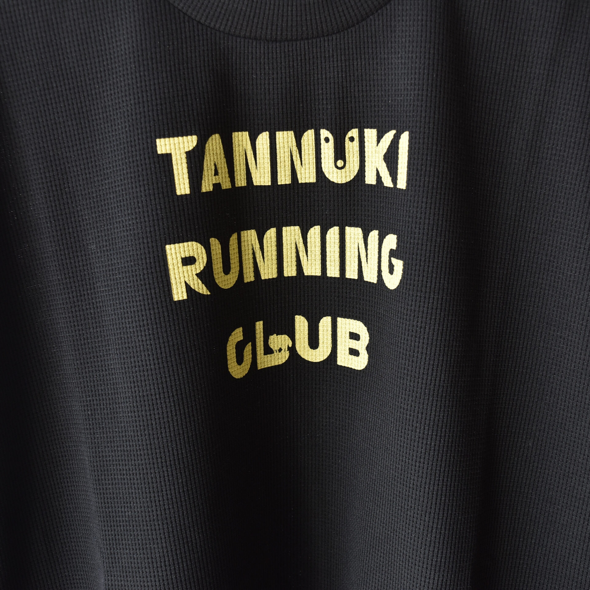 元々は架空のランニングクラブであったTANNUKI RUNNING CLUBの名称をブランドのオリジナルフォントでグラフィック化しています。こちらを着ていただければ皆公認のランニングクラブメンバーと思っています。